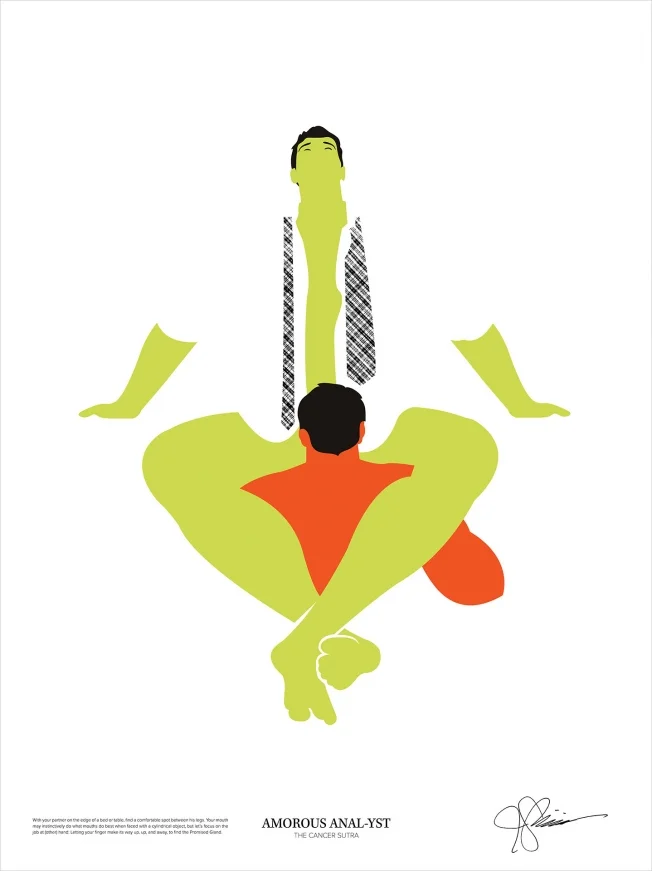 As Bull explained, "Curvaceousness, hard angles, a playful approach to negative space—all of these were critical in differentiating the Cancer Sutra from any other Kama Sutra we'd seen before."